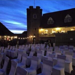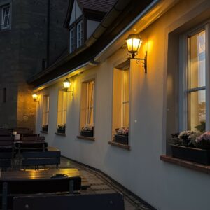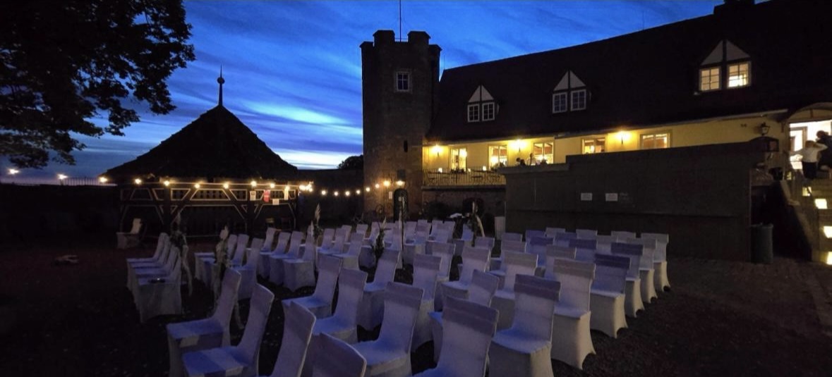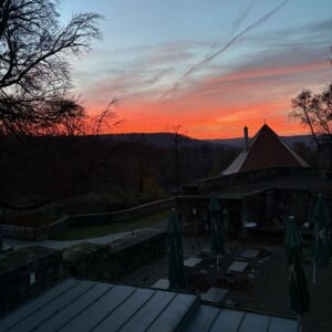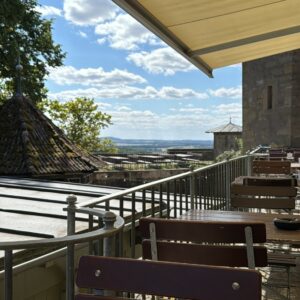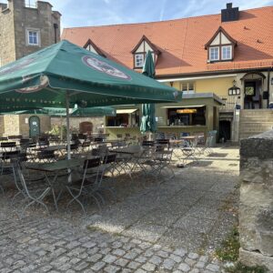 Ob in unserem idyllischen Burghof, auf der Abendterrasse mit Blick auf die Rhön oder in der rustikalen Gaststube: Genießen Sie regionale Küche oder hausgebackene Kuchen und Torten bei uns auf dem Schlossberg.